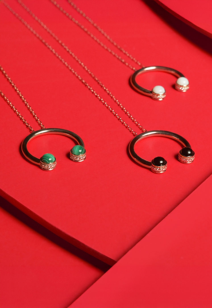 The dynamic structure of the collection’s design with its open circle shape symbolizes freedom of expression and the two opposing precious stones illustrate a couple gazing passionately at each other. With the TANGO jewelry you can start living wildly energetic.